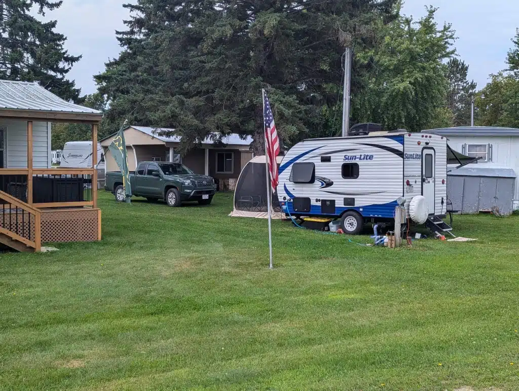 We splurged and got a campground with full hookups for three nights so we could feel a little bit at home. We are staying at the aptly named Lake of the Woods campground in Baudette, MN which we are definitely enjoying. They have a marina that we can walk to and staying in place feels good. We have spent our time here visiting Zipple Bay State park (beware the bugs) and renting a pontoon boat to visit the lake (and most likely veering into Canada now and then) where I caught my first fish! Lake of the Woods is as beautiful as advertised but we are looking to start heading west again. Today is a rainy rest day for napping, laundry and updating you on our adventures.