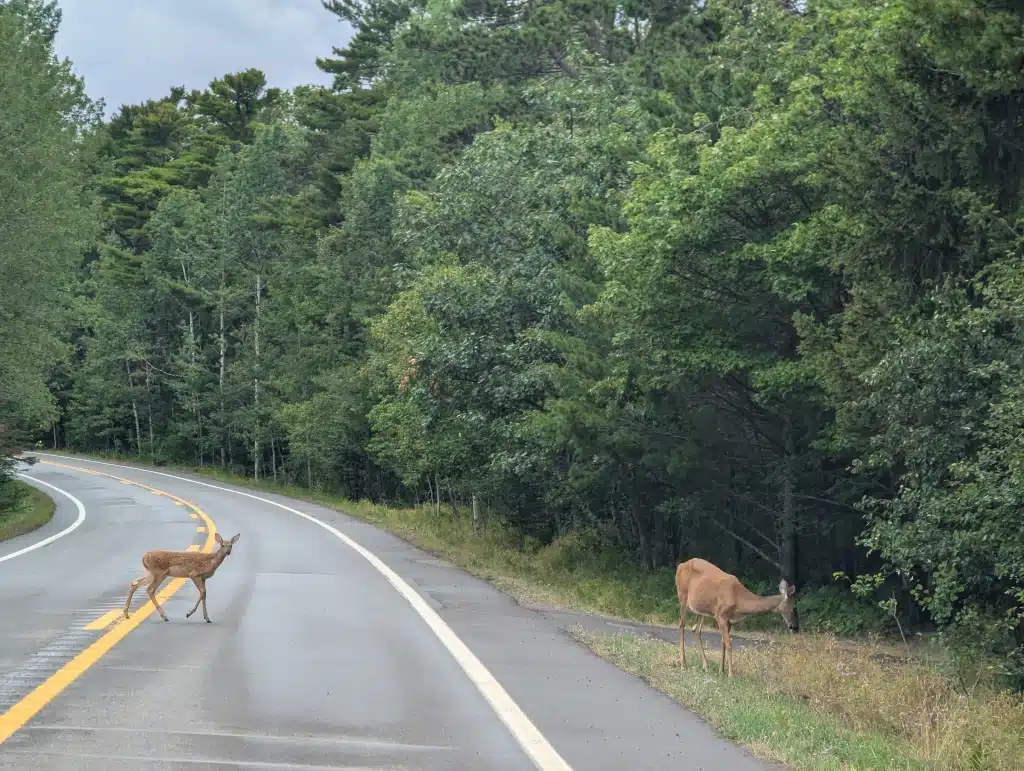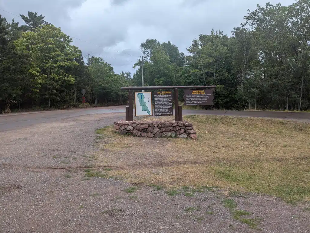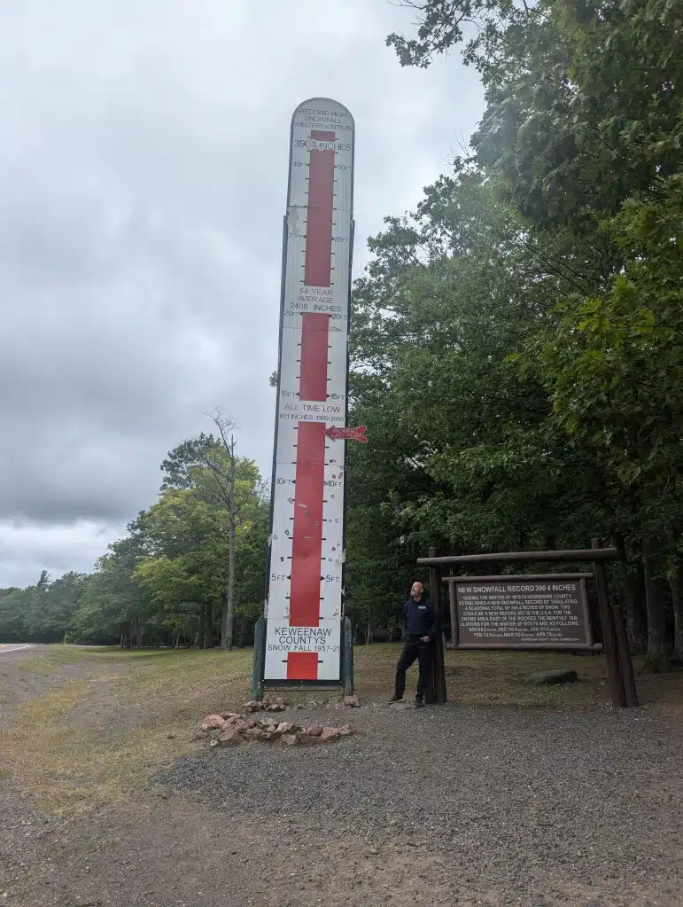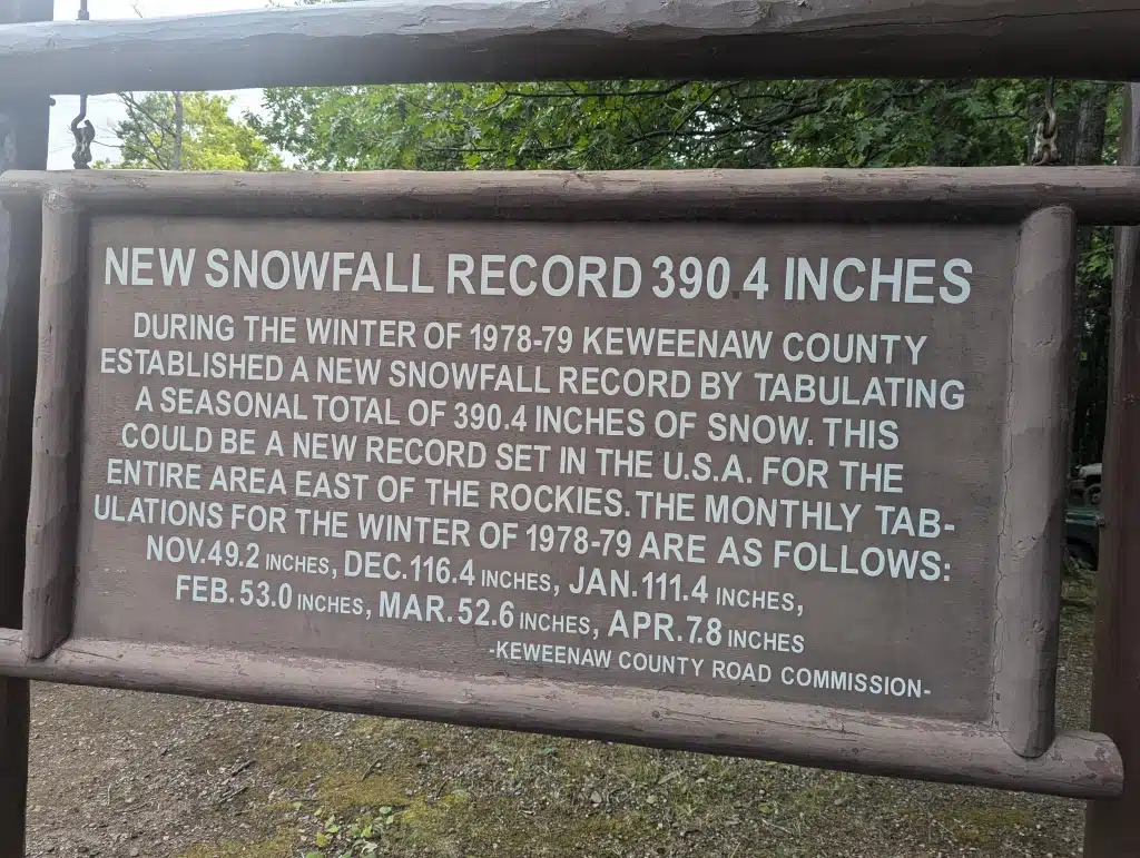 We left the paradise of Hiawatha State forest in the UP and headed Northwest to the border. We decided to spend a bit more time in the Northern US states since we had loved what we had seen so far and that decision did not disappoint. We decided to spend more time in the UP and head as north as we could so drove up to Houghton MI to stay at another Harvest Host location by the Houghton County Historical Society. Houghton is a great small town in a definitively rustic community on the Keweenaw Peninsula. This quiet location offered the museum at the historical society where we learned the history of the copper mining industry there. We decided to drive as far north on the peninsula as we could and saw some beautiful views of Lake Superior on the way. We got to the end of the road and discovered that we had hit the start of US Route 41 which runs all the way to Miami Florida. Who knew? The other interesting thing we found along the way was a large billboard which showed the highest and last years snowfall. We noticed it because it was so tall – 390.1 inches fell there in 1978! Holy cow! 32.5 feet! Crazy! Last year had an all time low of 14 feet! Talk about a winter wonderland.