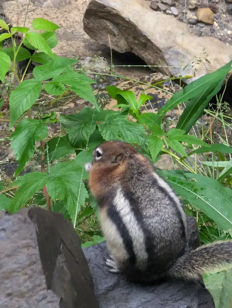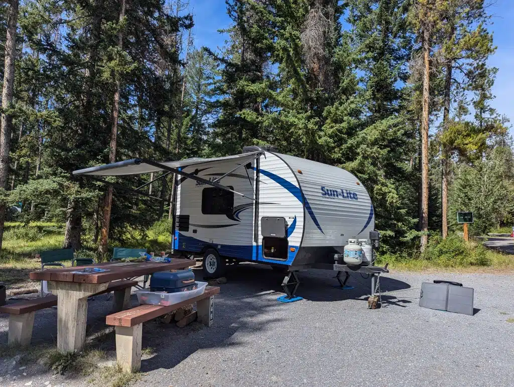 We had a long way home so we started back the way we came. I prefer to travel in loops instead of in and back but there was not really a choice this time but I was so pleasantly surprised how much things looked new and different on the way back. We definitely did not stop as often since the rain was turning more into slush as the temperature was heading down into the 30’s. We listened to a book on Audible (The Last Beekeeper – thank you Julie) on the way home and just looked out the window in awe. Even with the weather being rainy the views were incredible. We got back to our camper very happy to be home after a long day. Cooked our frozen lasagna (yes on our grill) and it was the perfect ending to the day. We were seriously grateful that we had a heater in our little camper and we felt very bad for the people in tents. It poured and sleeted most of the night with the temps down to the mid-30’s while we were warm and dry. Thank you to our Sun-lite camper! In writing this blog I discovered that 93(Icefield Parkway) is currently closed because of the snow so we were very lucky that we decided to do that run today.