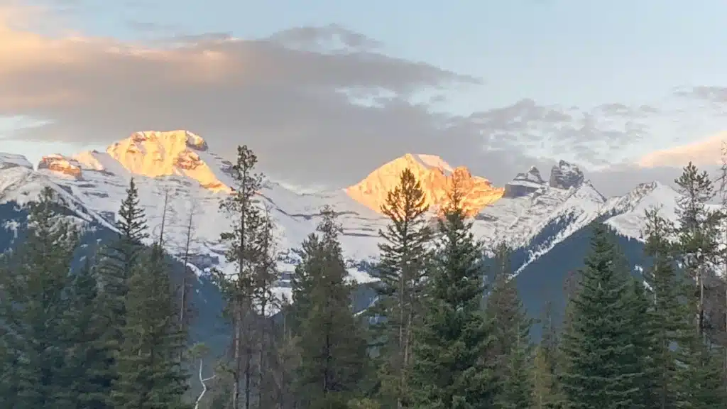 After having lunch at a Mexican restaurant recommended to us (Anejo) and a brief stop at the grocery store we headed back to the camper to drop things off and head out to our hike for the day. We drove up 1A to Johnston Canyon. We hiked the Upper and Lower falls and it was worth the hike. On our way home the sun decided to come out again and we were, once again, floored by the scenery. The sun against the snow covered mountains just took our breath away. It is amazing that we have gotten to see Banff in so many different ways. We have one more day and it is going to be sunny and beautiful. We have a 10 mile bike ride planned and we can’t wait! Another night being grateful for the comforts of our camper.