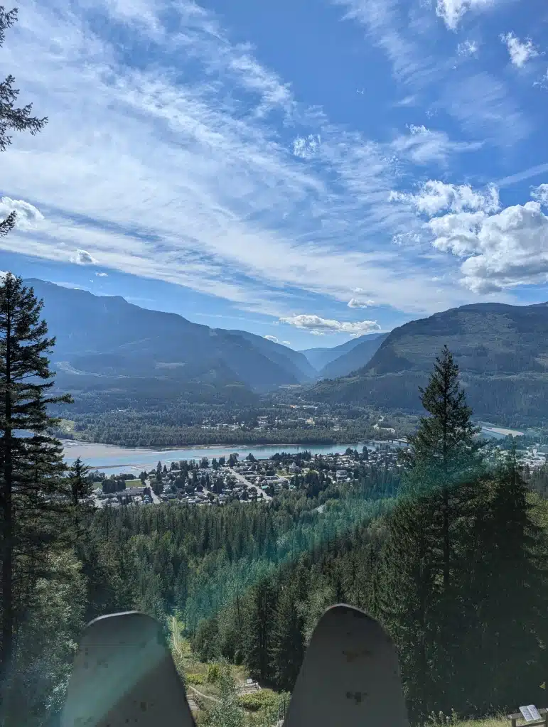 Our day today was our last day in the mountains. We woke up ready to continue our adventure and headed out to conquer the rest of the Rockies. Our day would end in Revelstoke which is at the base of the Rockies just on the other side. We ended up driving through three National Parks on the way. Our first one was a national park I had never heard of. It was called YoHo National park (which, honestly, make me chuckle). Our next park was Glacier National Park (the Canadian one) to yet more stunning views. Gigi handled those mountain passes like a champ. Our third and last park was Mount Revelstoke National Park. Our campground was just a few minutes down the road from downtown. Once we dropped off the camper we headed back out to explore Mount Revelstoke National Park to see what there was to see. We were pleasantly surprised. What there was to do was the Skyway drive which had multiple hiking and informational trails off of it that culminated in a drive to the summit. We arrived to find out that it was a very busy day for the small park and we were asked to do a few hikes before heading to the summit to give time for the parking area there to clear out a bit. Since that was largely our plan anyway we happily agreed. We did some small hikes along the way (learning all about the famous snow jumper, Nels Nelsen) and what surprised us was how different it all looked from where we just came. Yes there were beautiful snow covered mountains in the distance but the trees and vegetation on Mount Revelstoke was quite different. We found out that it hosts the only inland Canadian rainforest. Who knew??!! Its claim to fame, however, was the Alpine forest and meadows near the top. We drove for about 27km to the top and yes, it was busy but we got lucky and found a parking spot right by the summit trail (only 1km path – straight up). We got the to the top, barely, and enjoyed walking some of the smaller trails nearby. We really enjoyed the difference in visual landscape – it made me feel like we were in the Black Forest in Germany. We were pretty tired from our hikes by the end of it all that we decided to have dinner in Revelstoke and call it a night. We are at a local campground with, yes!, Wifi so I can finally post this!