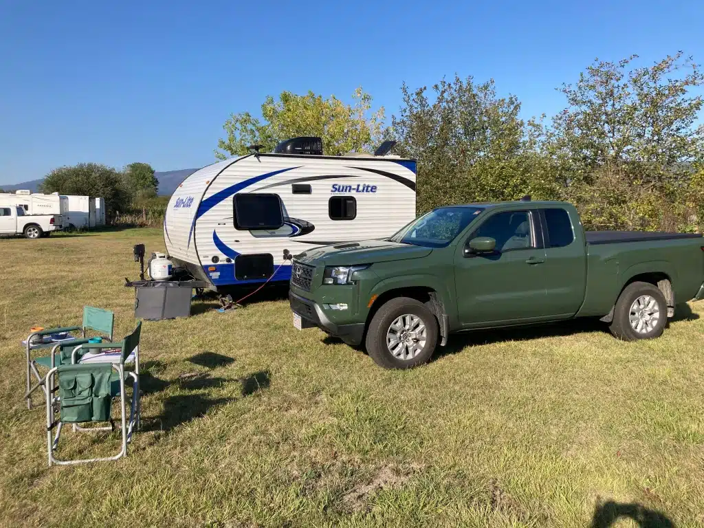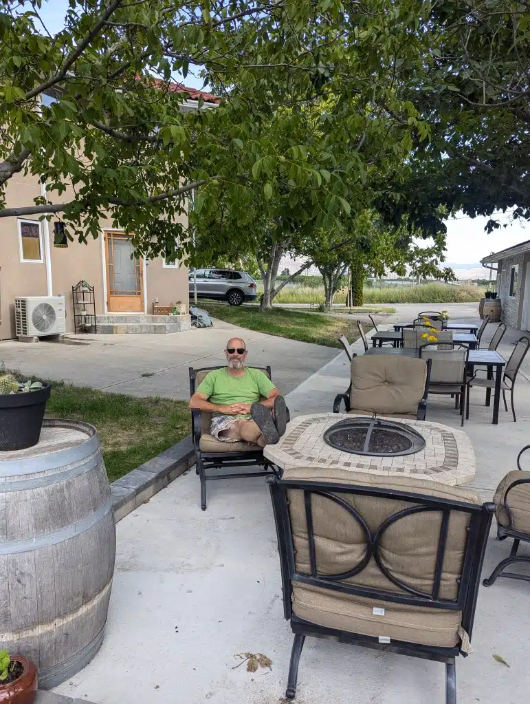 We headed out away from the Rockies and into the beautiful Okanagan district of Canada. This region is wine country and desert. Having said that there are many lakes even though the landscape is dry. It is beautiful out here and visually different. There were big meandering lakes and many many wineries on the way. We stopped by Waterside winery to check out how the wine is in the area. Surprisingly, we liked the whites more than the red and drank some wine and just relaxed and enjoyed the view. Shortly thereafter we arrived at our Harvest Host for the evening. It was a family run farm called Good & Plenty (very cute). The hosts were on their way out but pointed us to a spot in the field and we set up for the evening. We had the farm to ourselves and spent a relaxing evening cooking dinner and just hanging out together. We spent some time figuring out our next steps once entering the US again.